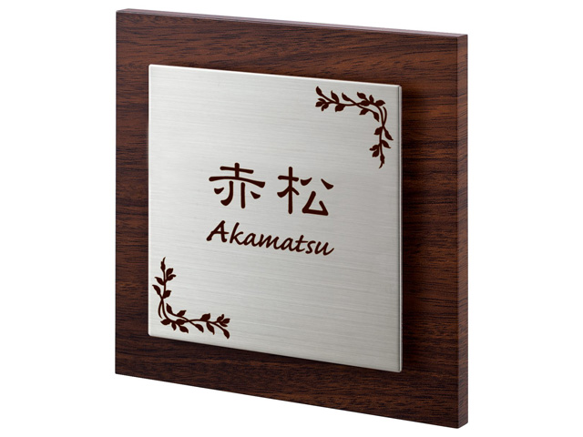 温かみのある木目コートを施したアクリル板の上にクールなステンレスヘアラインプレートを浮かせています。